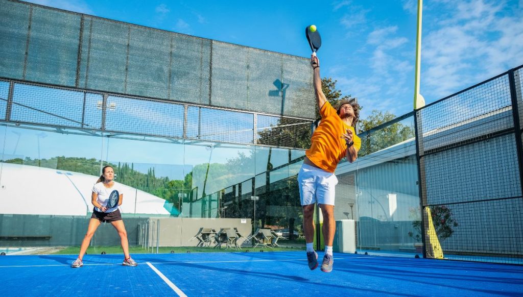 Parois en verre : fort rebond, renvoi rapide et explosion du jeu. Elles augmentent la vitesse moyenne du point et demandent une réaction immédiate. Le jeu devient plus vertical : montées au filet et remates prennent de l’importance.